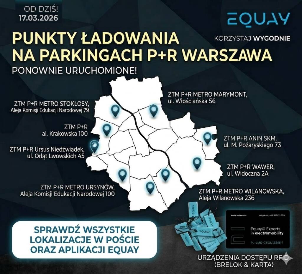 Ponownie zostały uruchomione punkty ładowania pojazdów elektrycznych na parkingach ZTM P+R w Warszawie